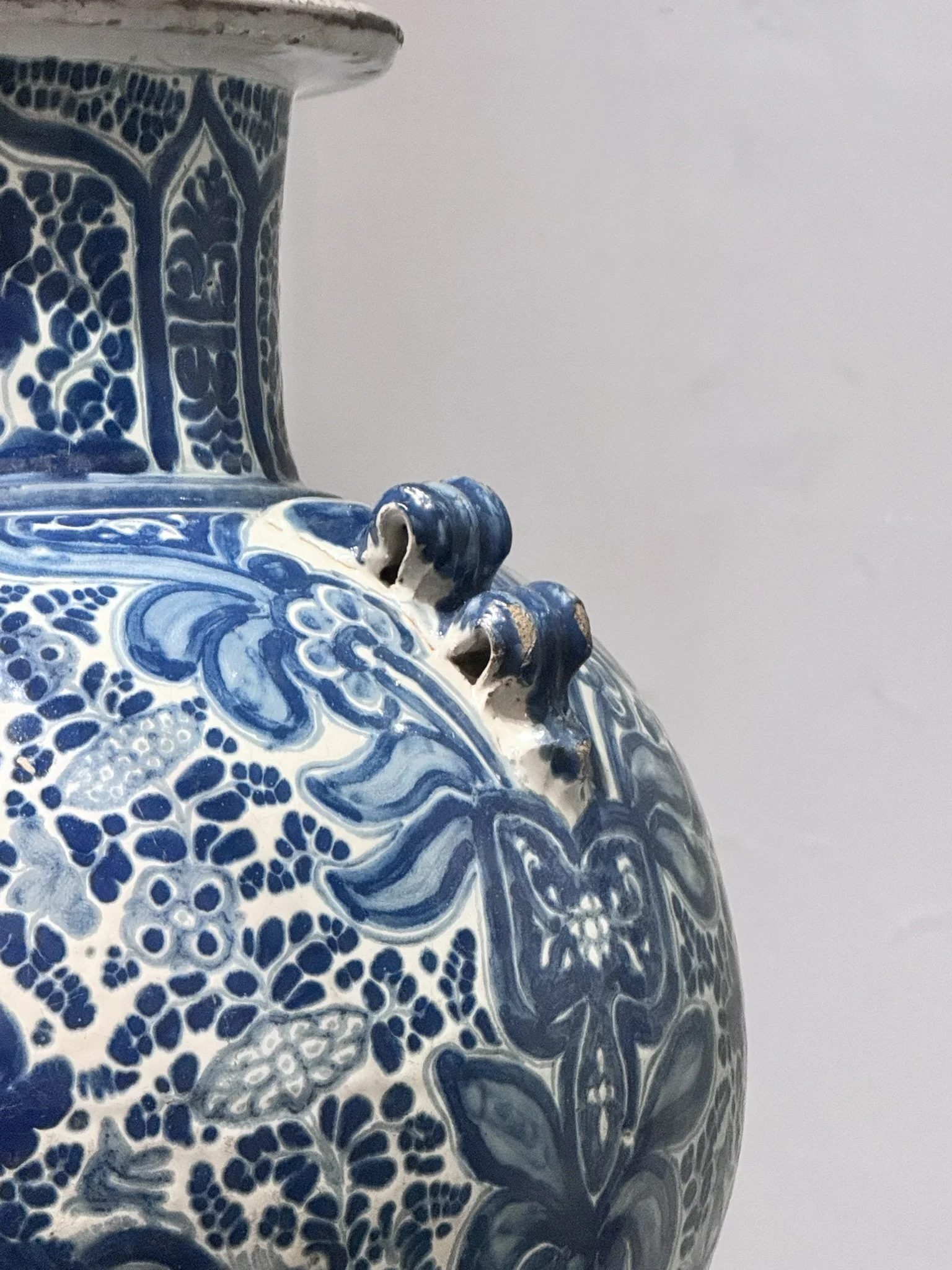 Artist(s) not currently known (New Spain), Serpentine Jar, ca. 1650–1700, Tin-glazed earthenware with cobalt blue decoration, Height: 54 cm, Museo Franz Mayer, Mexico City.