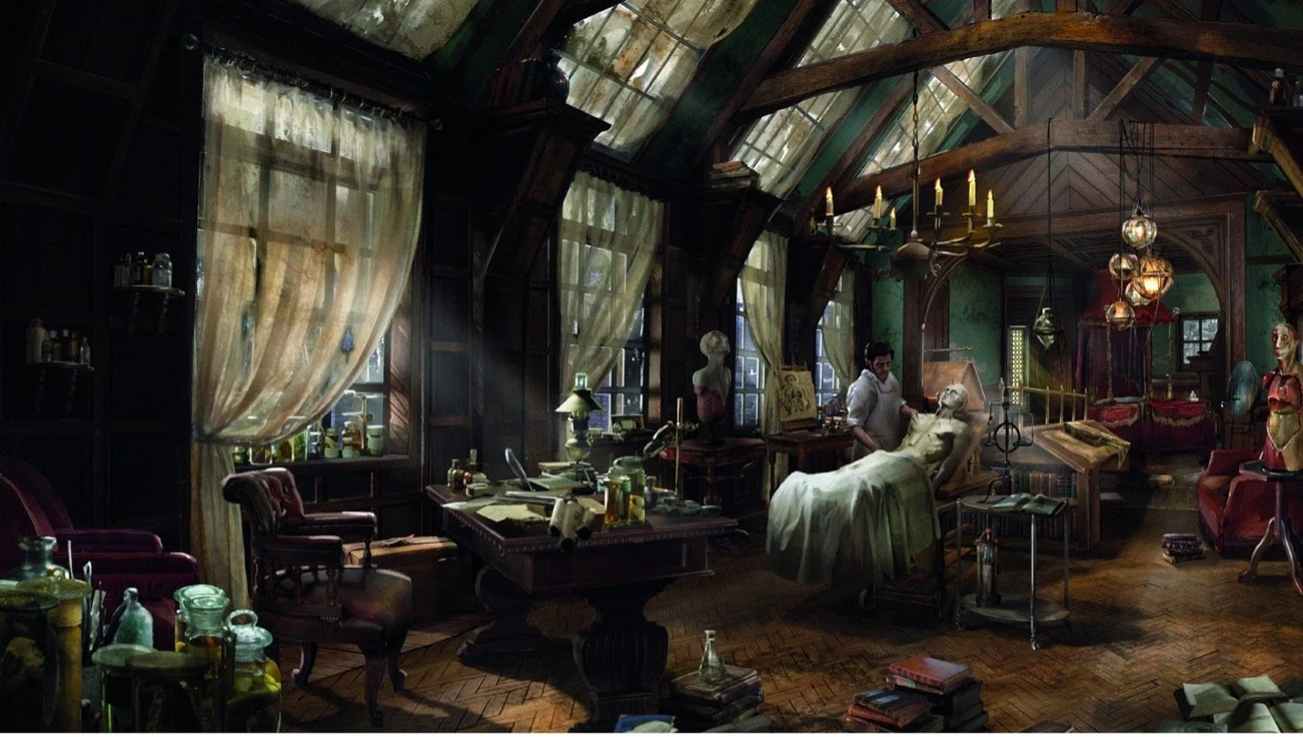 Tamara Deverell accompanied him on this trip, stating: ‘We were looking for neighbourhoods, rather than specific buildings, but we couldn't help finding inspiration in everything we saw.’ Deverell describes a charm that is ubiquitous; found manifest not just in notable Gothic exteriors, but of a more widespread, emanating quality. As a result, many of the elements included in the film are taken from a wide variety of locations: ‘The Gothic arches in the creature's cell are from the vaulted arches of the cloisters at the University of Glasgow. And the tiles are from a swimming pool, built in the 1800s, which we didn't even get to visit because it's on an island [Mount Stuart, on the isle of Bute] but the tiles still made it into the final film.’ Like Frankenstein himself, the production team pieced together pockets of inspiration to take on new kinds of life and representation in the film.