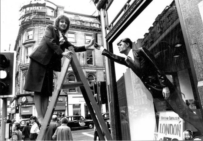 BA Sales Agent Caroline Rew on Gordon Street in 1985. Image courtesy of The Herald.