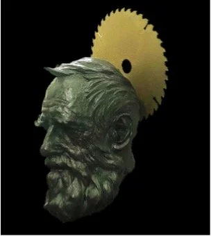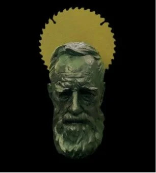 In the case of Jimmy Reid or St Joseph (2025), it was a chance mishap that proved decisive in its final form. Learning of Reid's engineering background mid-process, Paterson conceived the bust as a portrait of St Joseph. While cutting the base, he blunted the circular saw blade. Setting it aside, he looked back at the bust. "I thought, 'oh hold on…' — hence the halo". He reinterprets the blade, transforming it into a divine nimbus. In this way, Jimmy Reid is accurately sculpted into the Dundee “icon” he truly was.